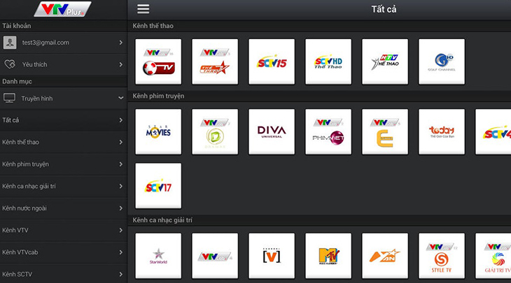 - Nhiều kênh thuộc VTV như: VTV1/2/3/4/5/6/9 và các kênh VTV tỉnh như: Đà Nẵng, Phú Yên, Cần Thơ, Huế. Ngay cả khi bỏ lỡ chương trình yêu thích, bạn vẫn có thể theo dõi lại với ứng dụng này.