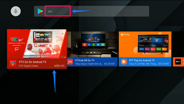 Bước 1: Vào kho ứng dụng Google Play Store, gõ vào ô tìm kiếm "vtv".