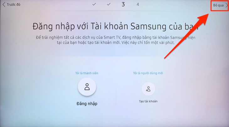 Bước 12: Tại bước này nếu ban đã có tài khoản Samsung trước đó thì bạn chọn đăng nhập nếu không có bạn chọn Bỏ qua để chuyển sang bước tiếp theo.