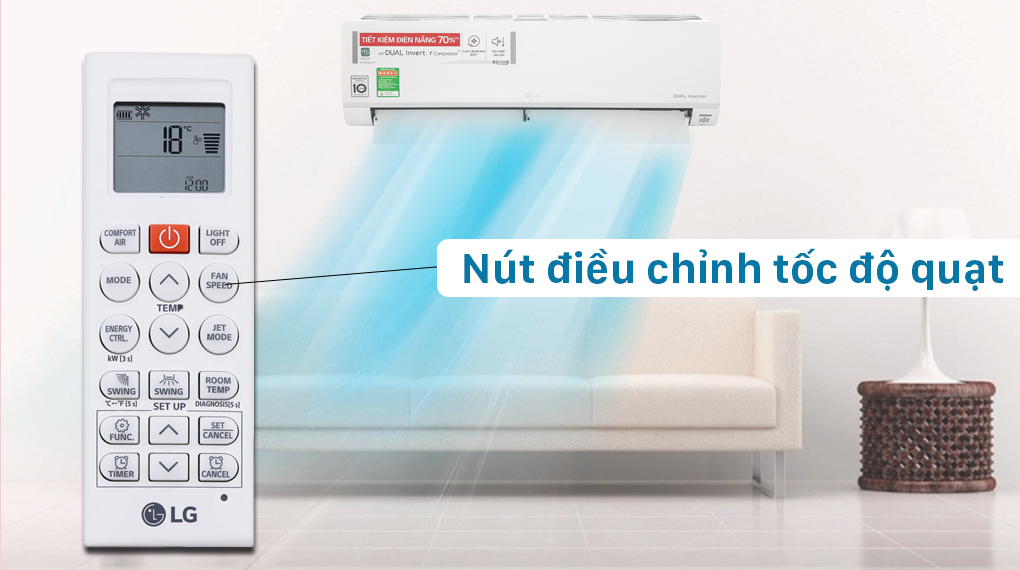Chế độ quạt trên điều hòa LG là chế độ cho phép máy hoạt động với công suất tương đương 1 chiếc quạt mà không làm lạnh hay làm nóng. Không khí trong phòng được thông thoáng, mát mẻ hơn nhưng lại không gây lạnh. Chế độ này thích hợp cho những người không chịu được khi ở điều hòa.