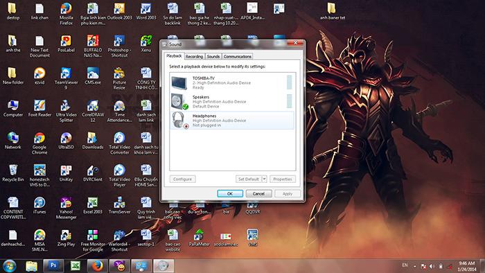 Bước 3: Lúc này, bạn sẽ thấy đường xuất âm thanh hiện tại là loa laptop > chọn vào biểu tượng phát âm là TV thì có thể phát được âm thanh. Ở đây bài viết chọn Toshiba-TV > sau đó chọn vào Set Default > chọn tiếp OK để lưu lại.