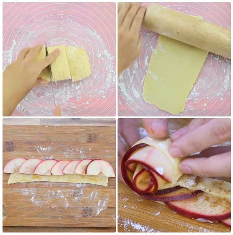 + Vậy là chúng ta đã làm xong món bánh táo hoa hồng thơm ngon này rồi. Sự kết hợp của táo, bơ và đường thêm một chút bột quế giúp món bánh thật sự là "một bông hoa hồng" rực rỡ xinh đẹp hấp dẫn thực khách hơn bao giờ hết.