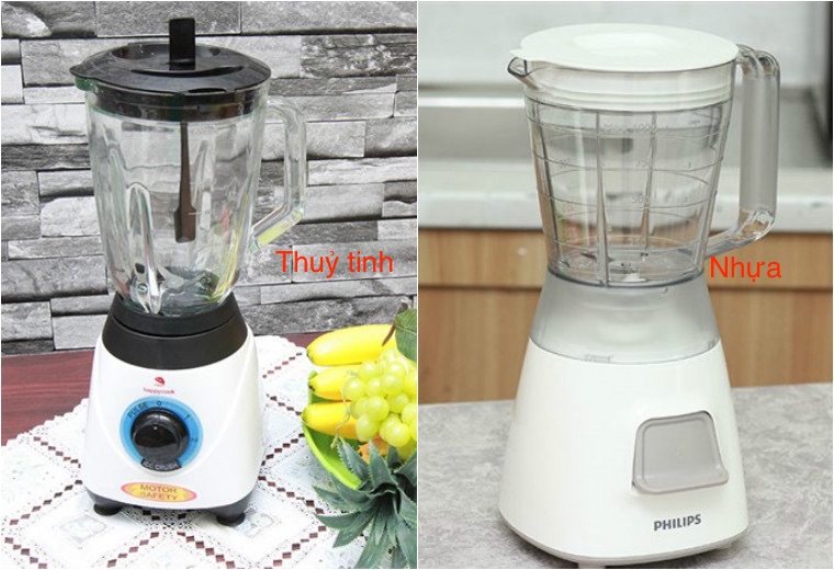 Chất liệu cối bằng thủy tinh tuy khá nặng và khó bảo quản nhưng lại không trầy xước lại dễ vệ sinh, có thể xay được thực phẩm hơi nóng (nên hạn chế vì có thể làm hỏng ron cao su).