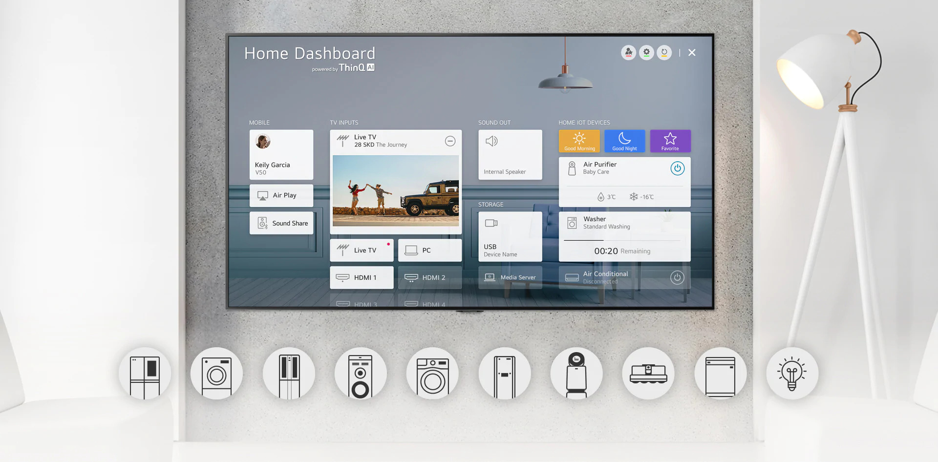 Ngoài những ứng dụng và công nghệ hiện đại, tivi còn như một phương tiện kết nối các thiết bị thông minh khác trong nhà. Đơn cử như Smart Tivi 4k của hãng LG, một số dòng được tích hợp trí thông minh nhân tạo ThinQ AI giúp chúng ta điều khiển các thiết bị khác như điều hoà, máy giặt, tủ lạnh,... nằm trong hệ sinh thái của LG chỉ bằng giọng nói.