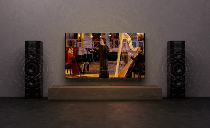 Acoustic Surface Audio: Giúp trải nghiệm trọn vẹn với chuyển động và âm thanh được căn chỉnh đồng thời và chính xác, khiến người dùng có cảm giác như âm thanh đang "bước" từ trong màn hình.