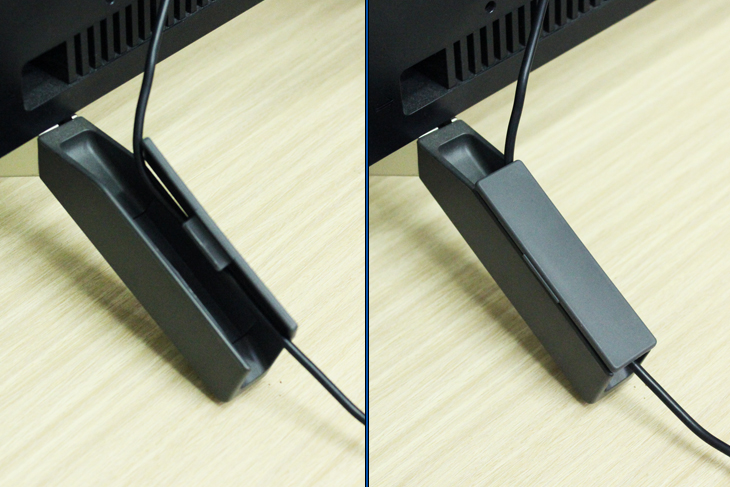Nhờ vào thiết kế "giấu" dây cáp phía sau tivi một cách gọn gàng mà bạn có thể treo tivi trên tường trong phòng ngủ hoặc bố trí với loa soundbar, dàn âm thanh ngay tại phòng khách đều hợp lí.