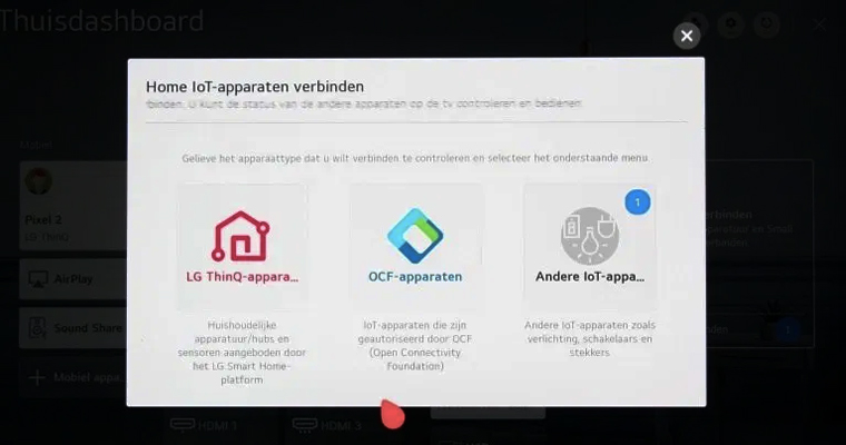 Ở bên phải bảng điều khiển là phần dành cho các thiết bị IoT. Ngoài các thiết bị ThinQ của LG thì bạn cũng có thể thêm các thiết bị sử dụng nền tảng kết nối mở như: OCF, Andere IoT,...