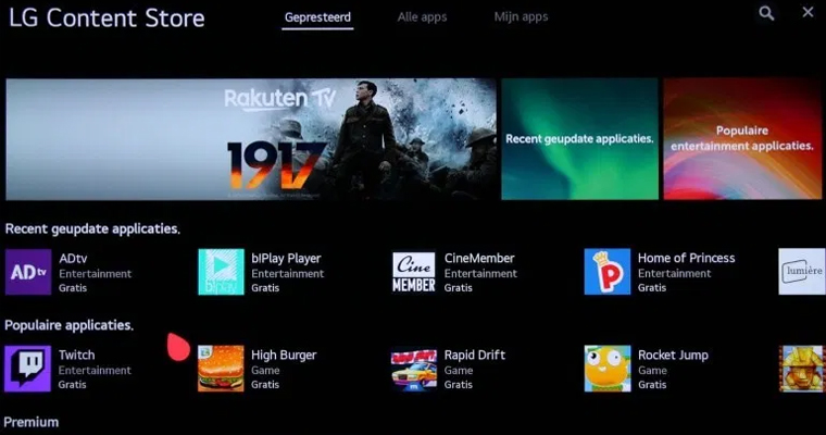 Ngoài ra, cửa hàng có toàn bộ các dịch vụ phát trực tuyến khác như Moviemax, Dvdpost, Pathé, Anixe, Filmbox live, Viewster, Mubi. Những người đam mê trò chơi có thể cài đặt Twitch. Nếu bạn muốn truyền phát một số thứ giáo dục, hãy xem CuriosityStream. Ngoài ra còn có một số ứng dụng cho đài phát thanh (ví dụ Radio Nederland hoặc Radio Belgie của Mytuner) thật tiện lợi.