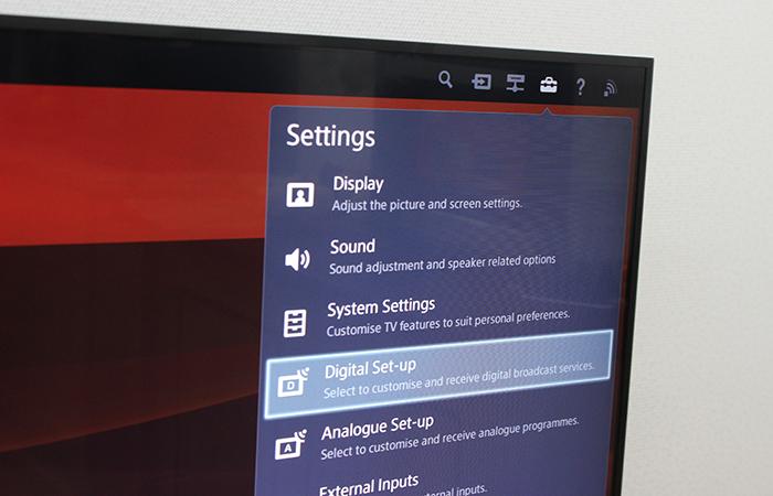 Bên cạnh đó, bạn có thể vào phần Cài đặt (Setting) của tivi tìm mục cài đặt Digital (Digital Set- up). Nếu chiếc tivi có mục Digital trong cài đặt thì nó chính là tivi được hỗ trợ DVB-T2.