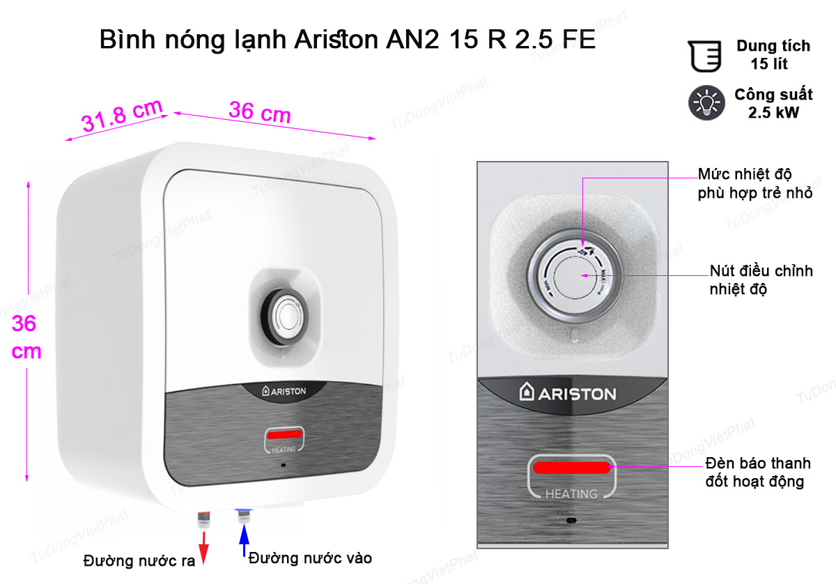Bền bỉ cùng năm tháng, tiêu thụ ít điện năng và đẹp một cách rất có “gu” nên những chiếc máy nước nóng Ariston nhanh chóng trở thành thiết bị gia dụng không thể thiếu trong đời sống sinh hoạt của gia đình. Ariston đã bước trên hành trình lan tỏa hơi ấm đến gia đình Việt trong suốt hơn 27 năm. Nhưng sử dụng bình nóng lạnh như thế nào cho hiệu quả, tiết kiệm điện và tăng tuổi thọ của sản phẩm, đó là điều không phải ai cũng biết. Điện Máy Người Việt xin gửi tới các bạn Giá Thành Và Cách Sử Dụng Bình Nóng Lạnh Ariston 15 lít AN2 15 R AG+ để các bạn tham khảo thêm nhé