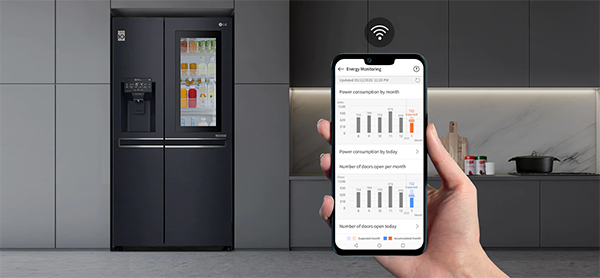 Ứng dụng LG ThinQ giúp bạn dễ dàng kết nối với tủ lạnh LG Instaview Door-in-Door theo cách chưa từng có. Các chế độ, nhiệt độ làm lạnh có thể điều chỉnh từ xa qua ứng dụng trên smartphone. Với ứng dụng này, người dùng nhận ngay thông báo tới điện thoại để cảnh báo khi quên chưa đóng cửa tủ lạnh. Cũng qua đó, ứng dụng LG ThinQ liên tục giám sát tủ lạnh nhà bạn. Cho dù là việc bảo trì hàng ngày hay vấn đề khác, ứng dụng này luôn giúp bạn dễ dàng theo dõi mức sử dụng điện năng.