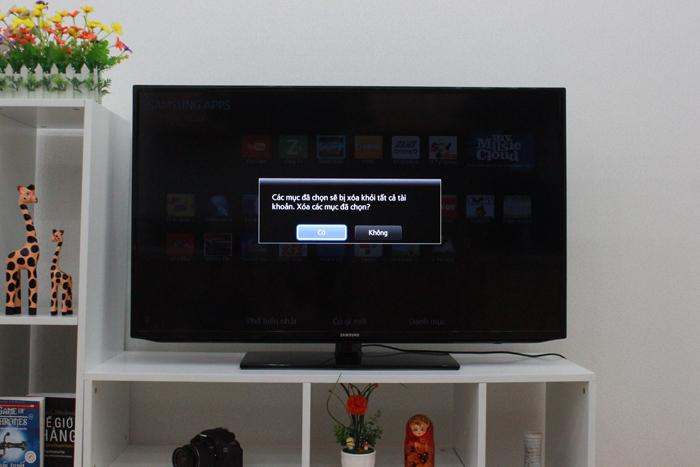 Để xóa ứng dụng đã cài đặt, bạn hãy vào phần Samsung Apps, sau đó chọn vào ứng dụng cần xóa, giữ chọn trong 3 giây, hộp thoại lựa chọn sẽ hiện ra à chọn xóa à xác nhận xóa, vậy là bạn đã xóa ứng dụng khỏi tivi của mình rồi đấy, khi cần bạn có thể thực hiện các thao tác ở trên để cài đặt lại ứng dụng vừa xóa.