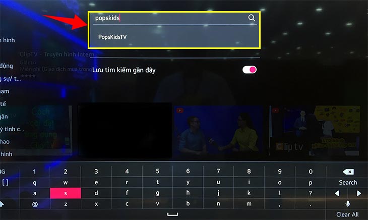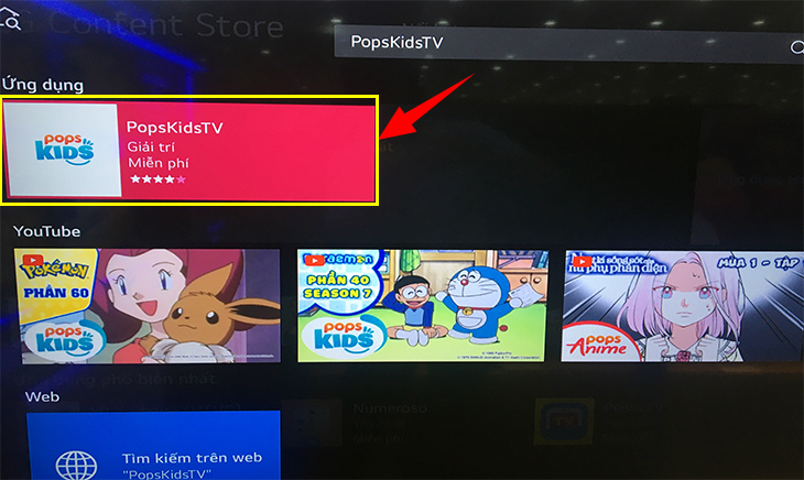 Bước 4: Gõ tên ứng dụng muốn cài đặt, trong hình là ứng dụng "PopsKids" và chọn chữ "Search".