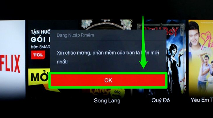 Bước 5: Nếu có bản cập nhật mới thì tivi sẽ tự động cập nhật giúp bạn, tuy nhiên hiện tivi này đang sở hữu bản mới nhất nên chưa cần cập nhật, bạn chọn "OK" là xong.