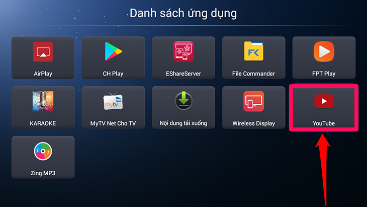 Bạn mở tivi lên, sau đó chọn mở ứng dụng "YouTube".