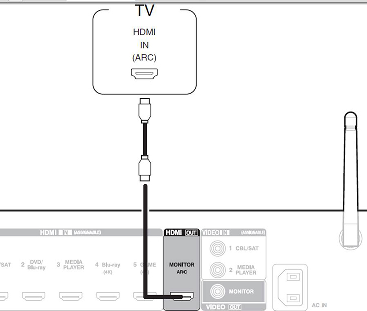 Sử dụng cáp HDMI giúp cho việc kết nối âm thanh giữa tivi và Amply một cách dễ dàng và tiện lợi hơn. Tuy nhiên, điều kiện để bạn sử dụng tính năng này, đó là tivi và Amly phải có cổng HDMI (ARC), đây là một cổng cho phép bạn xuất ngược âm thanh ra loa, Amly (nếu chỉ là cổng HDMI bình thường sẽ không được).