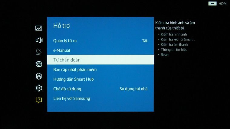 Bước 1: Nhấn vào nút MENU trên Remote sau đó chọn tiếp vào Hỗ trợ.
