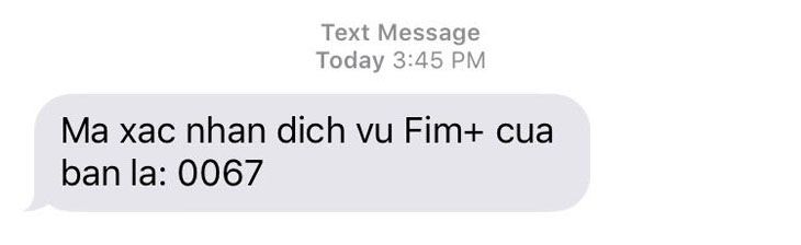 Bước 8: Một tin nhắn có mã kích hoạt sẽ được gửi đến số điện thoại bạn vừa sử dụng để đăng ký.