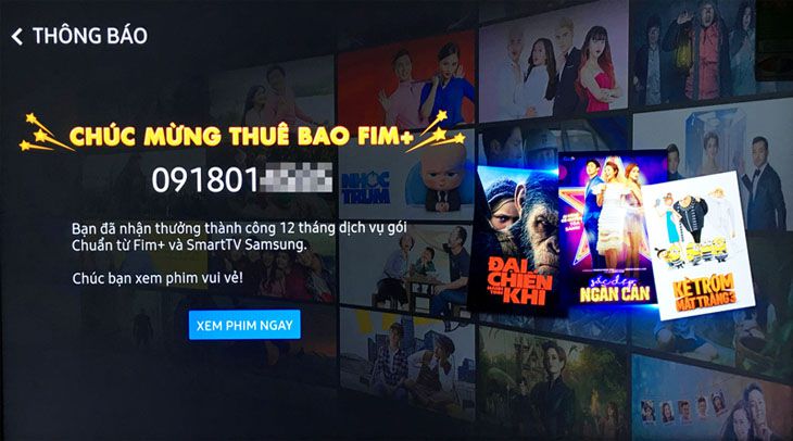 Thông báo dành cho tivi Samsung nhận được gói Fim+ chuẩn.