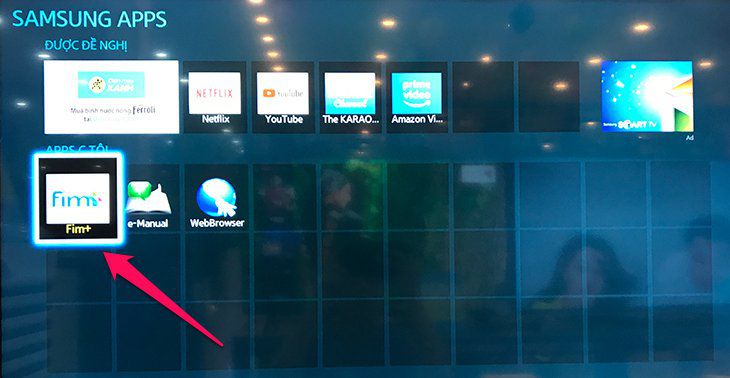 Với những tivi chạy giao diện Smart Hub như model UA40J5250D thì chọn vào mục Samsung App để hiện ra ứng dụng Fim+.