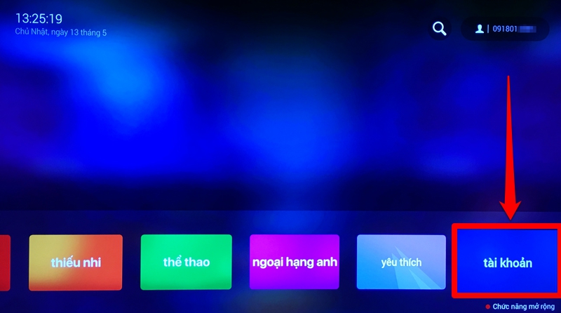 Bước 1: Ở màn hình chính bạn di chuyển về phía bên phải > chọn "Tài khoản".