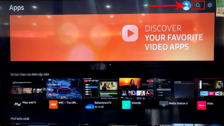 Lưu ý: Tivi cần được kết nối mạng trước và đăng nhập tài khoản Samsung để tải được ứng dụng.