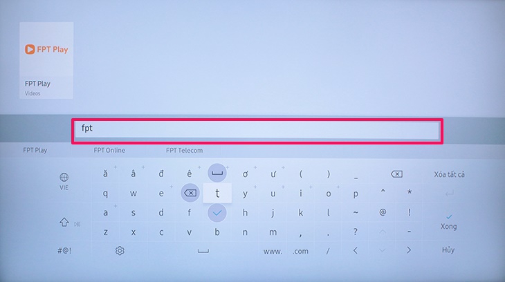 Bước 2: Bạn nhập tên ứng dụng muốn tải và khi tìm thấy, bạn chọn vào ứng dụng đó. Ở đây mình lấy ví dụ ứng dụng FPT Play.