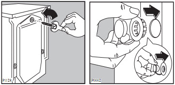 Để đảm bảo chức năng đúng cho máy ống dẫn nước thải phải luôn được móc giữ trên miếng đệm thích hợp được đặt ở trên của phía sau thân máy