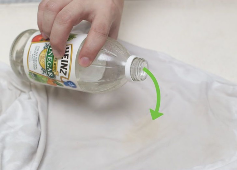 Cách 2: Dùng giẻ lau thấm vào giấm rồi lau lên áo sẽ giúp tẩy sạch các đốm đen li ti và ố vàng cũng như khử mùi mốc trên áo.