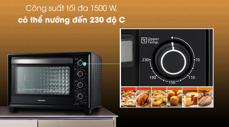 Lò nướng Panasonic Paln-NB-H3801KRA hoạt động với công suất tối đa đến 1.500W với nhiệt độ nướng lên tới 230 độ C cho món nướng chín ngon đạt chuẩn. Quạt đối lưu giúp nhiệt độ tỏa đều khắp lò trong quá trình nướng, món nướng chín nhanh và đều hơn.